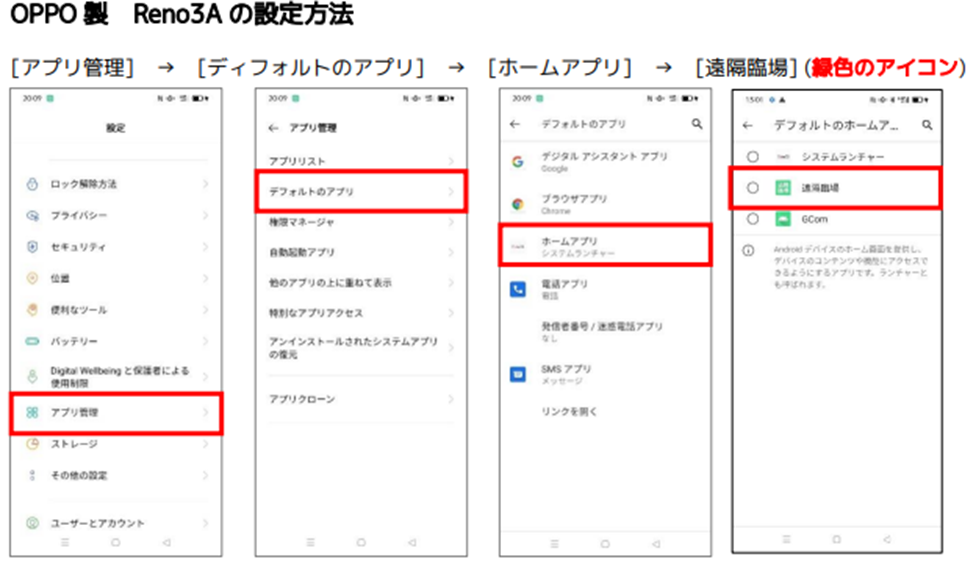 ※ご利用のGリポート(スマートフォン)の機種によって「デフォルトアプリ」や「標準アプリ」の設定に関する説明が異なりますので、ご注意ください。